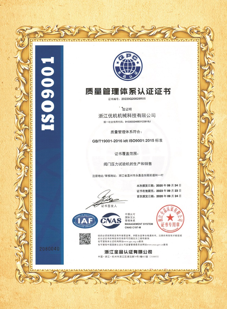 ISO9001質(zhì)量管理體系認(rèn)證證書(shū)